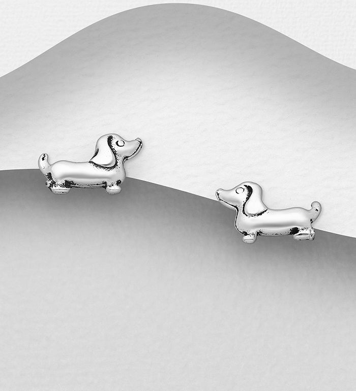 925 Sterling Silver dachshund Dog Push-Back Earrings